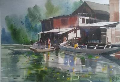 The Present series in Water colour on paper depicting serenity in Nature exemplifies subtle nuances of the tranquil beauty of the natural world. He has been deeply inspired by ever changing season, the play of light on water and the majestic beauty of mountains and forests. He has artistically revealed the ever changing moods and the majesty of the environment from the soft glow of dawn to the vibrant hues of dusk. His artistic use of colour, light and dimensionality and aesthetic panorama that enable a viewer to delve into the heart of the landscape and enjoy its subtleties in relevant perspectives of visual art. He has aptly given prominence to serenity of natural world and its omnipresent grandeur in the proper perspectives of visual art. His works connect the viewers to details of the untouched and serene worlds in the universe.