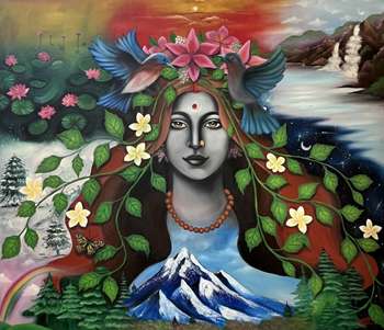Bulbul Rai channels her devotion through her art, using bold colours and intricate figures to communicate the essence of the energy of Lord Shiva. Her works go beyond mere representation, offering a fusion of art and religion that allows viewers to connect with the metaphysical aspects of her subject.