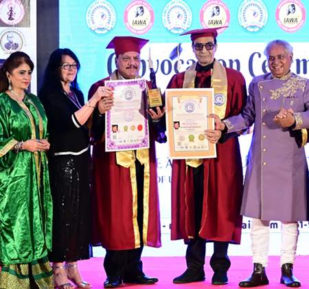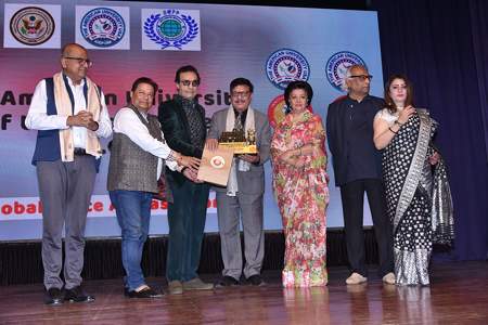 Mr. Vinod Anand now know as Dr.Vinod Anand has been Honoured with Honourary Doctorate from the American University by Vice Chancellor Dr. prof HE Madhukrishan,senior Scientist Mrs Tatyana of Kazakhstan, Chancellor of University affiliated by our AUGP USA Scientist in Kazakhstan Ambassador Dr.Daljeet Kaur Representative of AUGP Asia. The Honourable Guests present at the ceremony were ACP Sanjay Patil,Veteran Actor Dheeraj Kumar, Deepak Prashar, Prof Dr Jasjit Suri a renowned scientist and AI expert and many more Dignitaries were present at the gala ceremony .