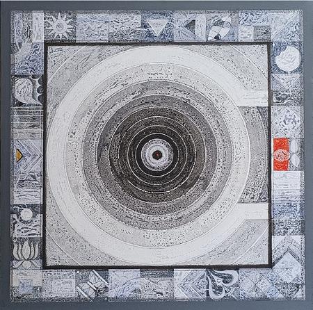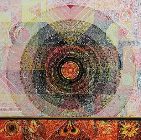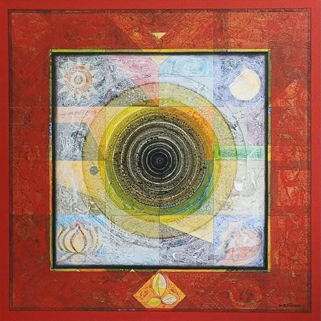 Rooted in abstraction yet pulsating with energy, Nikam’s art captures the essence of Stillness (tranquility) in a chaotic world. His works, characterised by intricate textures, layers of colours, and geometrical and rhythmic forms, evoke a meditative resonance. Using a diverse palette of earthy and ethereal tones, the canvases pulsate with a quiet energy, offering a sensory and contemplative experience.