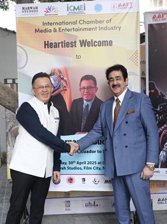 Noida, April 30, 2025: The International Chamber of Media and Entertainment Industry (ICMEI), in collaboration with the Embassy of Ecuador in India, formally inaugurated the Indo Ecuador Film and Cultural Forum at Marwah Studios, Noida Film City. This initiative aims to deepen cultural, artistic, and people-to-people ties between the Republic of Ecuador and the Republic of India through films, media, and performing arts.