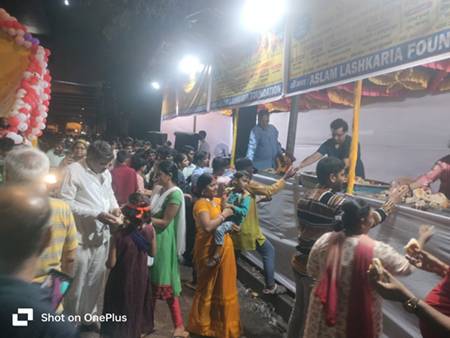 Near Versova Metro Station in the Versova Assembly area, the Aslam Lashkaria Foundation organized a massive food stall, where arrangements for meals and refreshments were made for lakhs of devotees. More than 50 volunteers worked tirelessly, continuously serving food and water to the visitors.