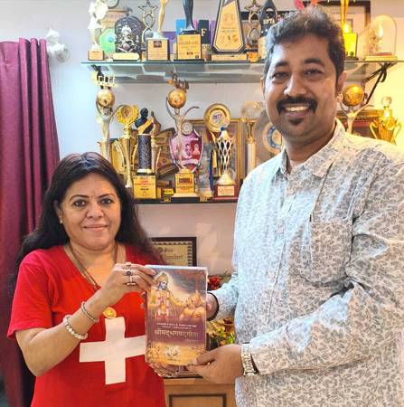Dr. Krishna Chouhan presented the Bhagavad Gita to several celebrities, including Surendra Pal, Deepak Parashar, Deepa Narayan Jha, Abhishek Khanna, Deepak Desai, Ramesh Goyal, Anupama, Kiran Parmar, singer NK Naresh, Vicky Nagar, and Bheru Jain.